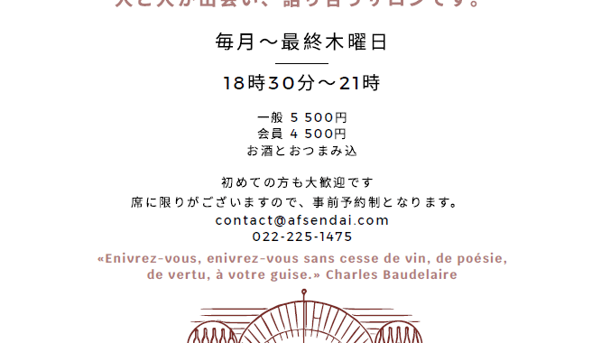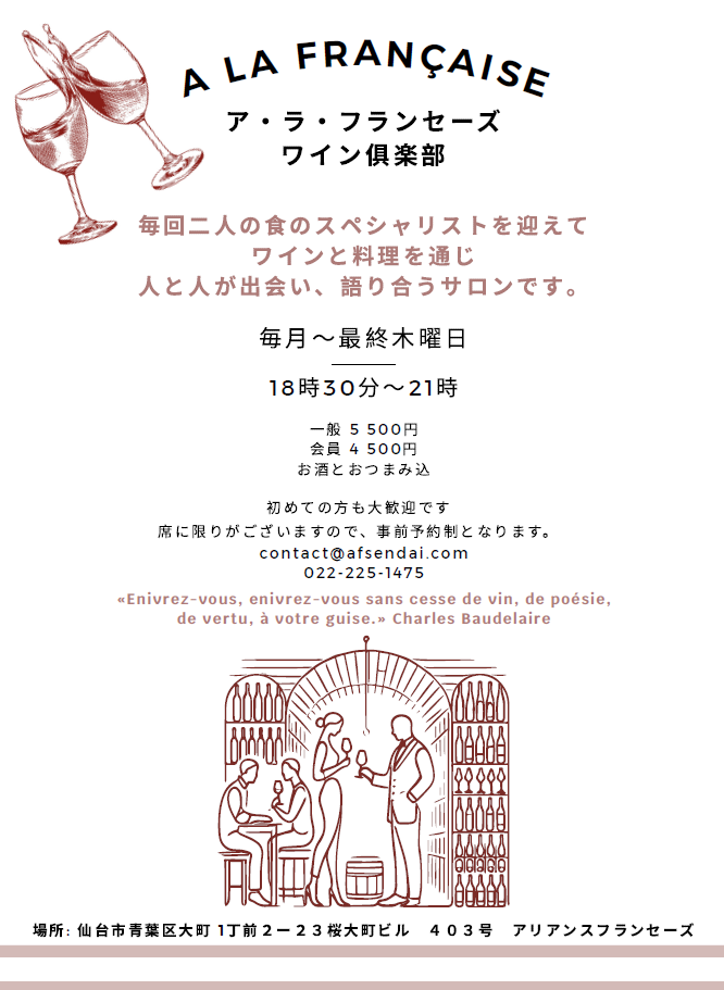 ワインと料理を通じ人と人が出会い、語り合うサロンです。